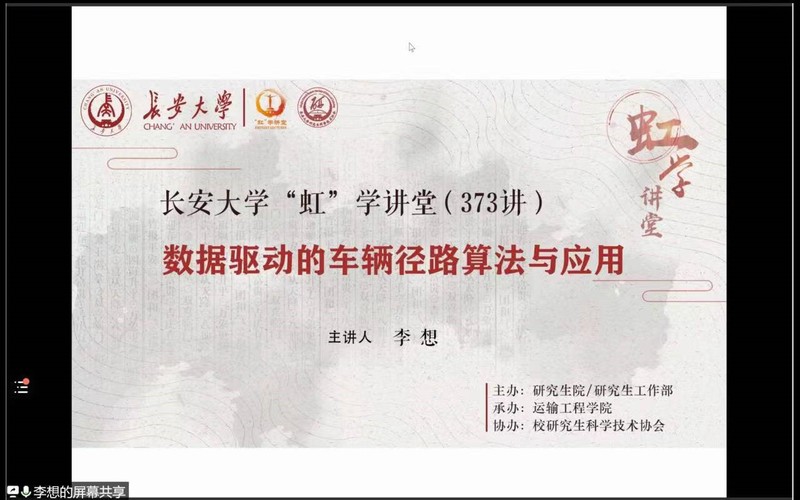 5月20日下午,由研究生院/研究生工作部主办、美高梅娱乐城 承办、院研究生科学技术协会协办的“虹”学讲堂第373讲(线上)讲座顺利举办。此次“虹”学讲堂,邀请了北京化工大学李想教授作题为“数据驱动的车辆径路算法与应用”的学术报告。美高梅娱乐城相关美高梅娱乐城 共计300余名师生参加了此次讲座。