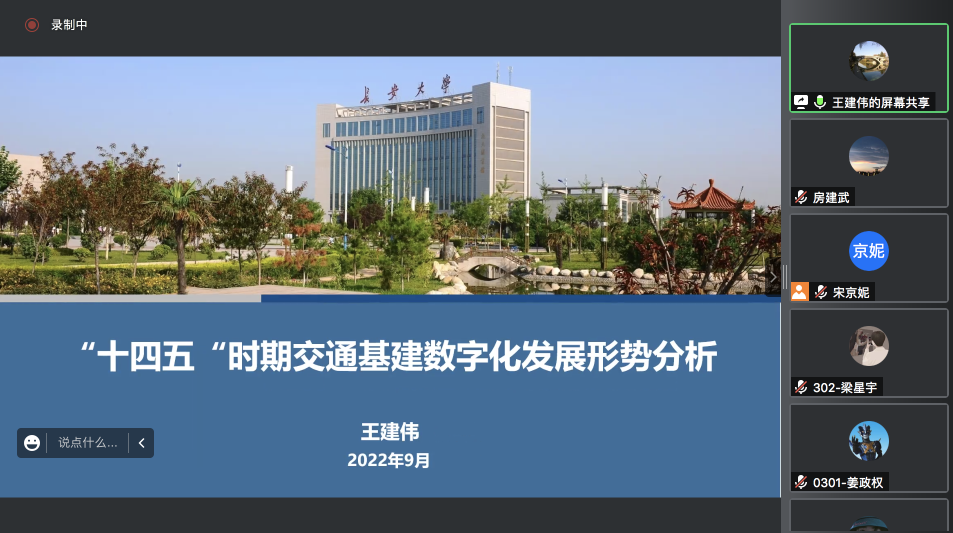 本次座谈会由系主任房建武副教授主持,首先,房建武主任介绍了本次师生座谈会召开的相关背景;其次,王建伟副校长从专业成立过程、师资团队、科研与教学的关系、交通基建数字化发展形势等方面与学生进行了分享与交流,帮助学生了解行业需求,鼓励学生积极开展创新创业训练,树立远大理想,奋发有为,争做担当民族复兴大任的时代新人。