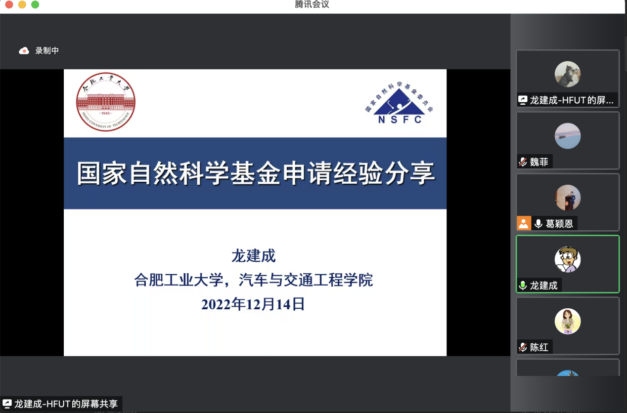 首先,美高梅娱乐城 邀请合肥工业大学汽车与交通工程美高梅娱乐城 院长龙建成教授为美高梅娱乐城 教师作了国家自然科学基金申请的辅导报告,龙建成教授从国家自然科学基金的战略定位、申报概要、高质量撰写国家基金申请书等方面,深入细致地剖析如何提高申请书撰写的质量等问题。之后结合美高梅娱乐城 教师的交流提问及多年申报实际经验,从多个方面深入剖析国家自然科学基金项目申报的策略等内容。