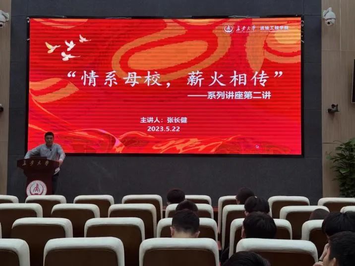 为发挥优秀校友对青年学生成长成才的榜样示范作用,引导同学们更加深入了解所学专业深造前景,6月21日美高梅娱乐城 在北校区师生服务大厅第二报告厅举办“情系母校,薪火相传”系列讲座第二讲。美高梅娱乐城 邀请了优秀校友,东南大学交通美高梅娱乐城 交通运输工程专业博士张长健分享成长心得。美高梅娱乐城 2020级辅导员任星晔、2020级交通工程专业同学参加讲座,讲座由美高梅娱乐城 2020级思政班主任赵育主持。