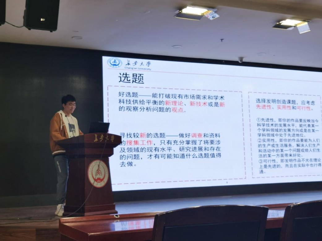 本次宣讲会上,运输美高梅娱乐城 谌自豪同学针对比赛规则进行了说明,就参赛对象及要求、参赛作品类别、赛程安排、材料报送及要求等方面进行了详细讲解。