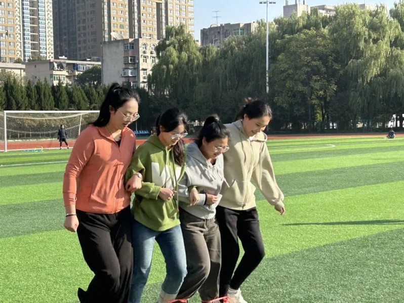 “并肩前行”比赛于10月29日上午在校本部操场举行。参赛宿舍抵达场地后有序领取绑腿绳,由工作人员带领进行适应性训练,分组开始比赛。赛场上,参赛队员们牢牢把握节奏,控制好步幅频率,手挽手、心连心,共同朝着目标奔去。活动既考验了宿舍成员的协调能力,更考验了彼此间的默契配合,多轮比赛后,最终取用时最短的三支队伍依次获得一、二、三等奖。