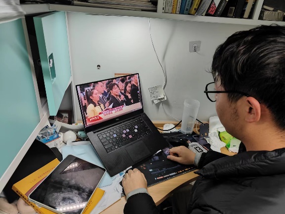 学生党员收听收看两会报道