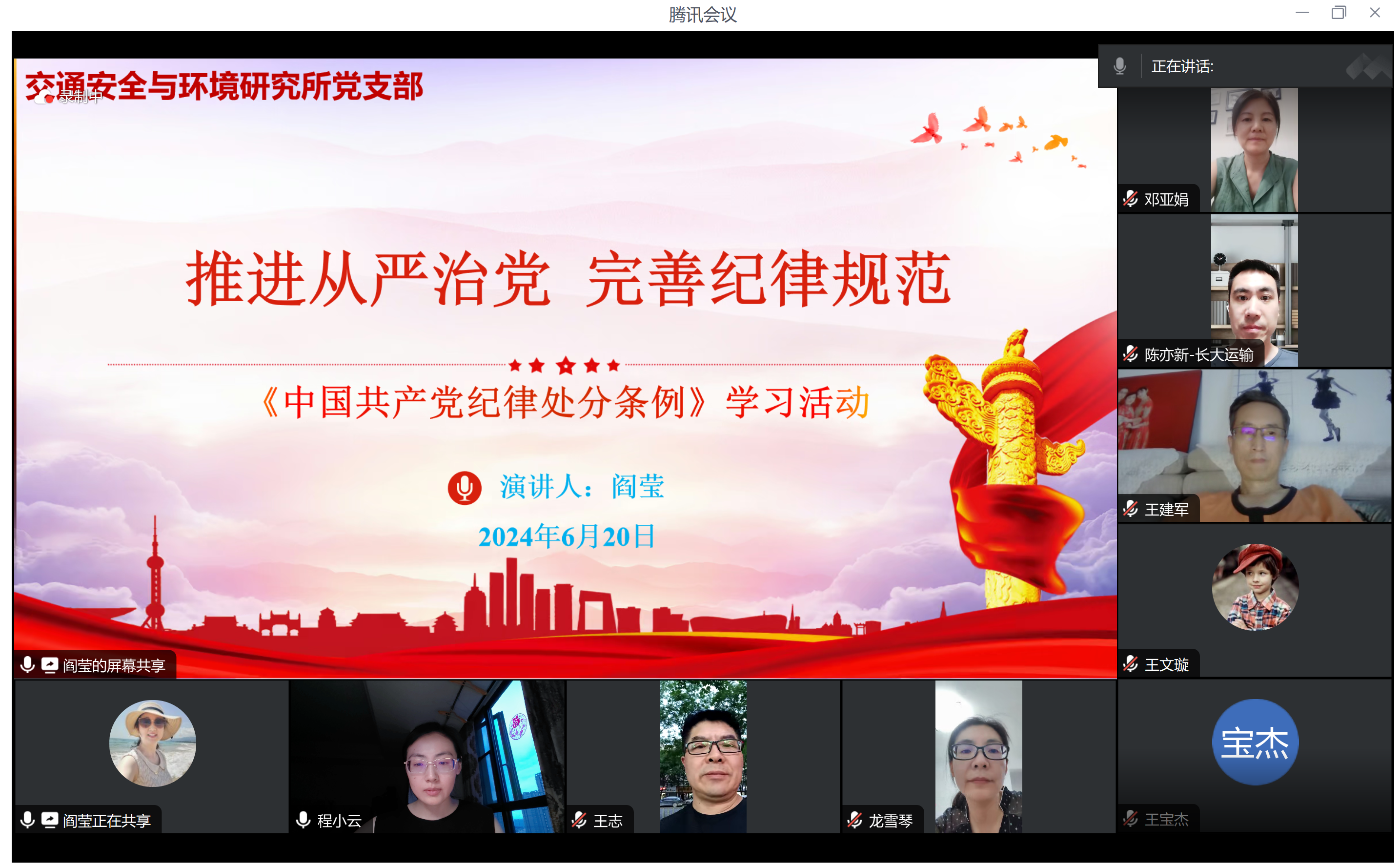 首先,阎莹传达了近期美高梅娱乐城 和美高梅娱乐城 党委关党纪学习教育的重点任务和工作安排,进一步强调了开展党纪学习教育是一项重要的政治任务,必须深刻认识党的纪律建设的重要性,要求每位党员同志需坚持不同形式扎实开展党纪学习教育,切实增强“四个定力”。