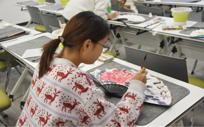 为进一步弘扬中华优秀传统文化,不断丰富大学生的校园文化生活,引导学生在动手实践中感受传统文化。2024年11月22日下午,长安大学第二十四届大学生文化节之“扇面绘初心,中华传古韵”折扇绘制比赛于长安大学鸿翔园社区二楼多功能厅顺利举行。