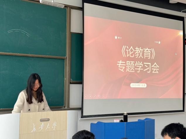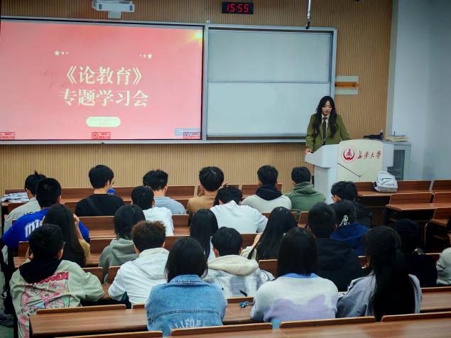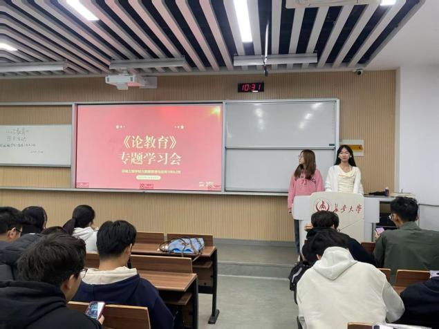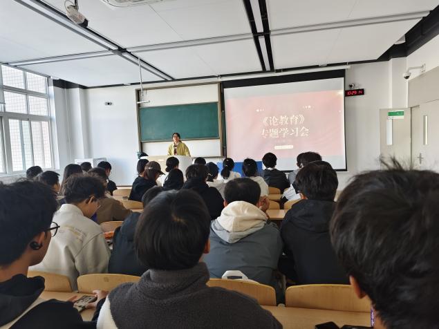 各班团支书带领同学们详细学习《论教育》的重要意义和主要内容。同学们了解到教育是民族振兴、社会进步的重要基石,是功在当代、利在千秋的德政工程。党的十八大以来,以习近平同志为核心的党中央坚持把教育作为国之大计、党之大计,推动新时代教育事业取得历史性成就、发生格局性变化。这让同学们对教育的重要性有了更深刻的认识。