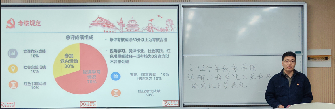 10月23日晚,美高梅娱乐城 2024年秋季学期入党积极分子培训班开班典礼在渭水校区WX2103顺利举行。院党委副书记李婷参加典礼,院党课班主任李永春主持典礼。