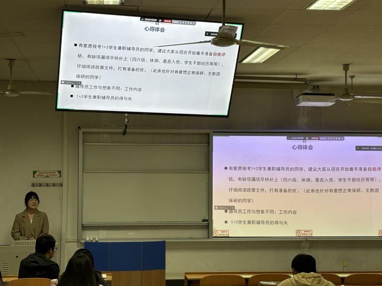 王文娟重点与大家分享了推免报名的注意事项以及中英文面试的应对策略。她以“学海无涯,勤勉为舟;争分夺秒,未雨绸缪;应变自如,择善而从”鼓励大家珍惜时光,积极准备,勇敢追求自己的梦想。