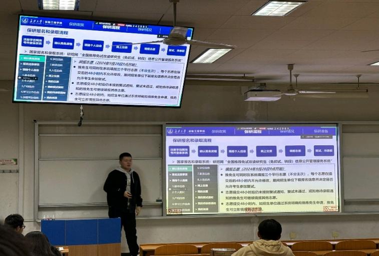 胡攀为大家深入解读了保研政策、流程及注意事项。他强调,保研需综合考虑绩点、科研、竞赛、英语能力、专业知识及综合表现等多方面因素,鼓励大家全面发展,不断提升自我。