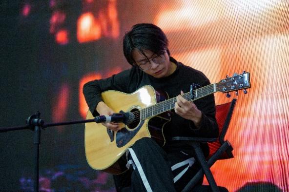 一把吉他演绎无尽故事。沉稳的拨弦,勾勒出深沉的曲调。