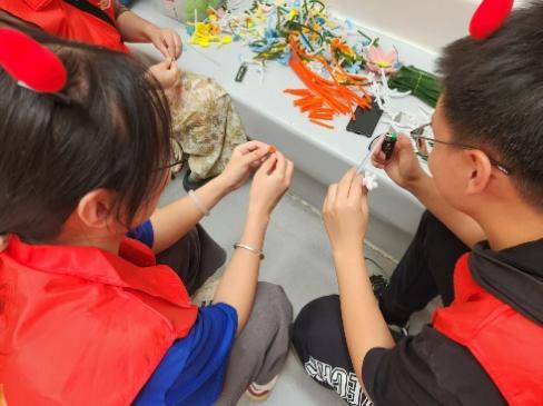 上午十点,荣民龙首广场热闹非凡。志愿者们早早到场,分工协作,有条不紊地布置现场。在扭扭棒花体验区,小朋友和家长们兴趣盎然:五彩缤纷的扭扭棒花摆满摊位,一朵朵饱含祝福的小花如春日般绽放;专门负责教学的志愿者手把手地教孩子们如何用扭扭棒制作花朵,从简单的卷曲到形状塑造,每一步都充满乐趣。体验区不时传来阵阵欢笑声,大家在亲手制作的过程中,感受着浓浓的亲子温情。
