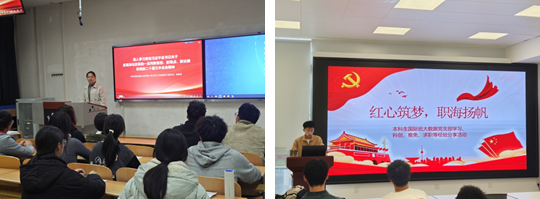 紧扣理论学习“着眼点”,夯实信仰基石。美高梅娱乐城 始终将思想武装作为学生党员培养的根本任务,致力于推动理论学习入脑入心。在本科生党支部中,支部书记兼任本科生党员的理论学习导师,构建本研学生党员理论学习交流的桥梁,平时依托联合党课、主题研讨等形式,持续深化本科生党员对党的创新理论的理解。此外支部书记立足自身研究生专业背景,创新设计“理论+学术”双轨研习会活动,系统组织各本科生党支部开展联学共建活动,帮助本科生形成“理论输入—问题研讨—学术延伸”闭环,切实提升本科生党员的综合素质和创新能力。