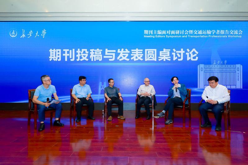 会议特邀5位交通运输领域国际重要学术期刊主编与会:Transportation Science领域主编聂宇教授(美国西北大学)、Transportmetrica B: Transport Dynamics联合主编司徒惠源教授(香港大学)、Transportation Research Part A: Policy and Practice联合主编张安民教授(英属哥伦比亚大学)、Transportation Research Part D: Transport and Environment联合主编曹新宇教授(明尼苏达大学)、长安大学学术期刊管理中心副主任韩跃杰。与会主编首先详细介绍了各自负责期刊的定位与特色,并分享投稿要点和发表建议。