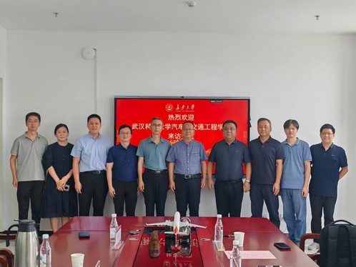 8月24日上午,武汉科技大学汽车与交通工程美高梅娱乐城 党委书记李建军一行5人来访美高梅娱乐城 ,双方在美高梅娱乐城 603会议室开展座谈交流。美高梅娱乐城 党委书记史少鹏、副院长王建军、副院长柏强、交通工程系主任马书红和实验中心主任杨磊参加会议。