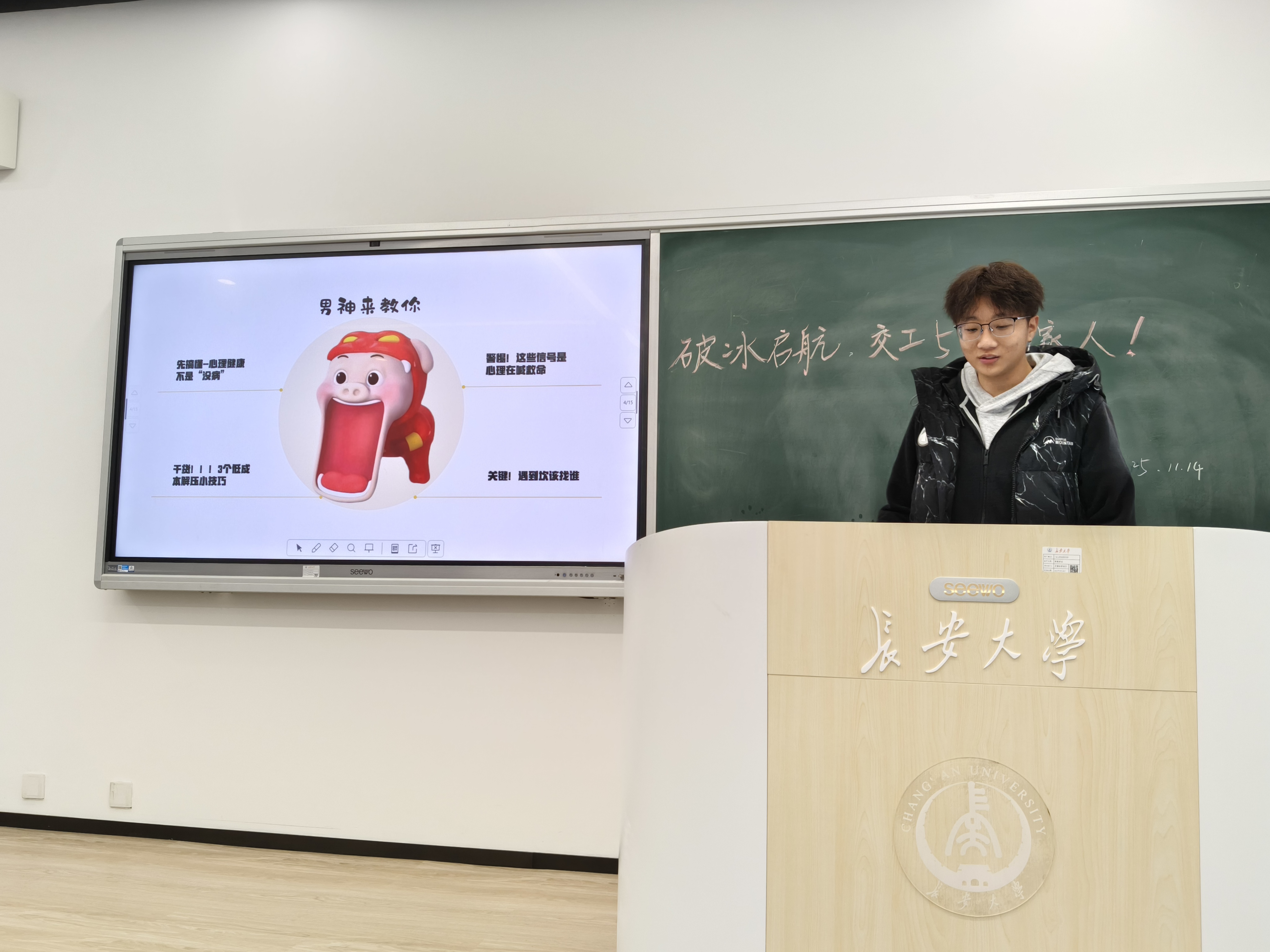 破冰游戏后,丑智豪同学带领大家聚焦入学适应困惑,分享了实用心理调节技巧:从“给家人打个电话、跑一圈操场”的合理宣泄法,到“我今天也在慢慢适应”的积极自我暗示,再到“尊重室友作息差异”的人际相处小窍门,让新生们掌握了缓解焦虑、融入集体的具体方法。同时,他还介绍了美高梅娱乐城 心理咨询中心的预约方式,强调“心理委员、班主任都是随时可信赖的支持”,为新生们筑牢心理后盾。