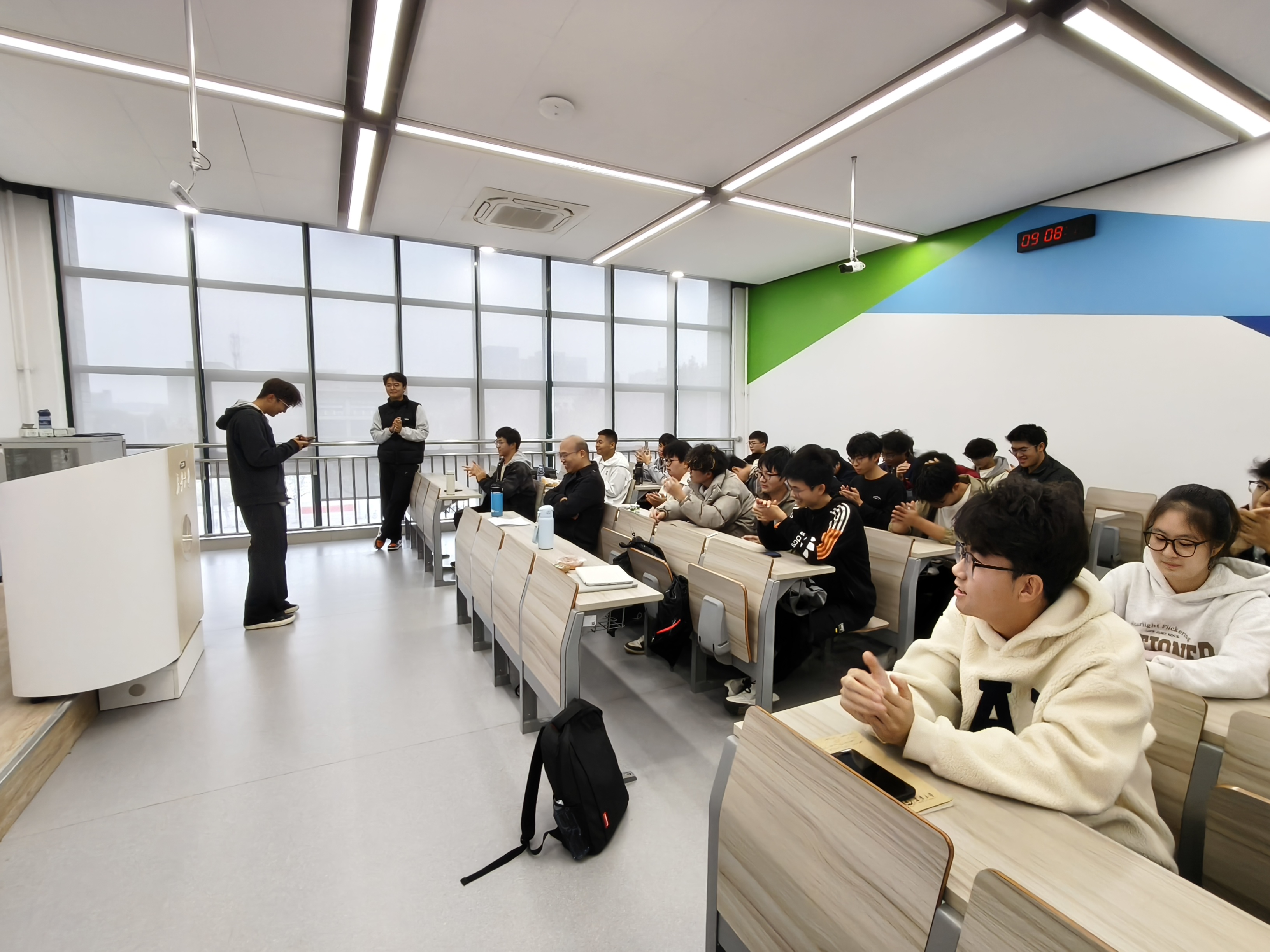 活动尾声,卫东选老师作总结讲话。他首先肯定了新生们在活动中的热情参与,点赞大家从“陌生拘谨”到“主动互动”的转变;随后结合自身经历,告诉同学们“入学迷茫、焦虑是成长的常态,不必过度担忧”;最后寄语全体新生:“希望大家在交工5班这个集体里,多主动交流、多尝试新可能,遇到困难既会自我调节、也懂求助他人,一起把班级变成温暖的‘大学小家’。”