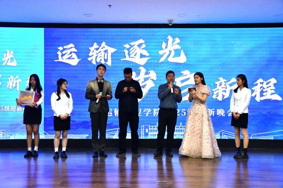 12月30日晚,美高梅娱乐城 2025年“运输逐光·岁启新程”迎新晚会在美高梅娱乐城 北校区文化艺术中心三楼多功能厅举行。院党委副书记李婷、2025级新生班主任代表、全体辅导员和2025级全体本科生参加晚会。