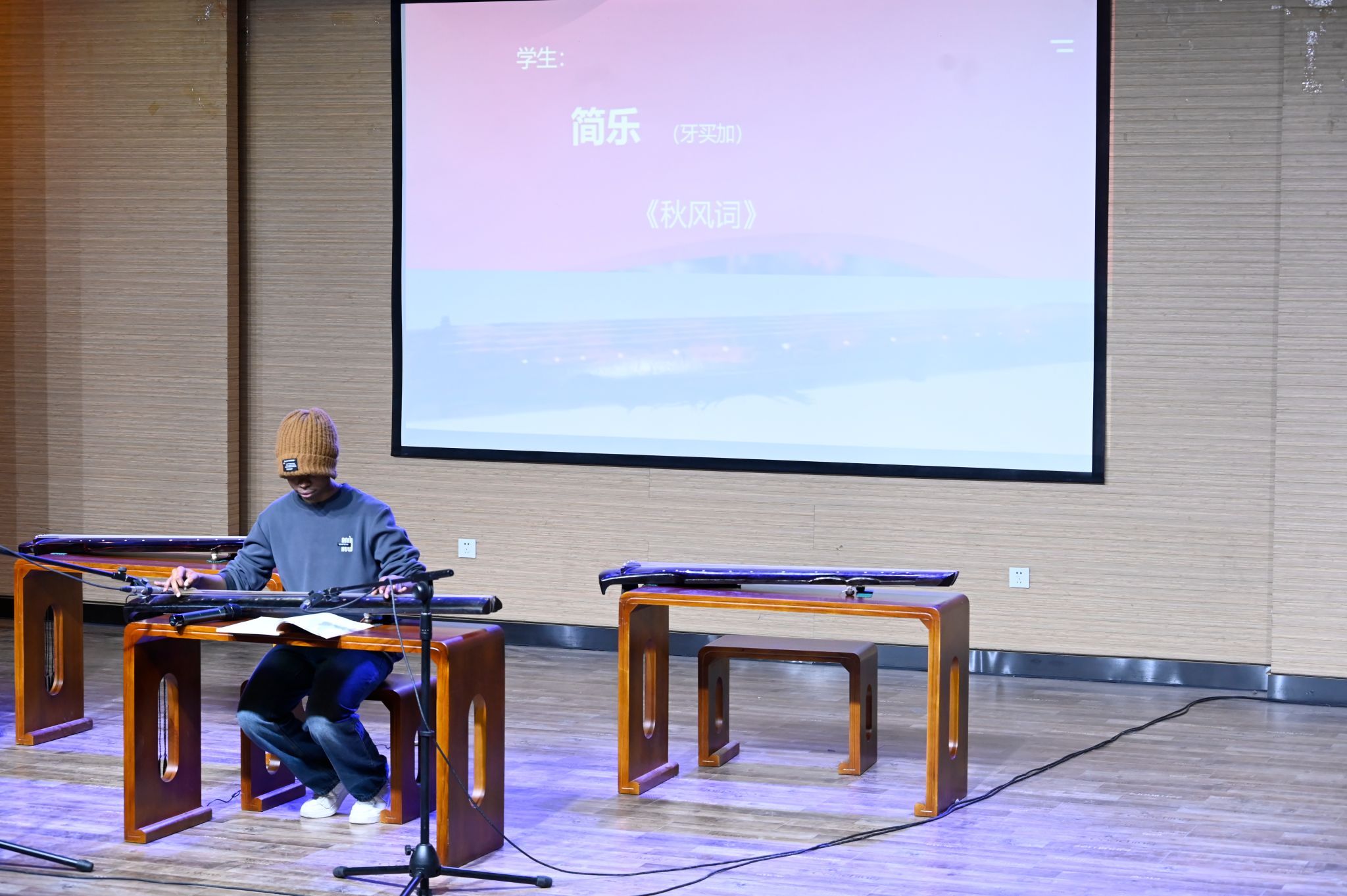 对域外学子实施美育浸润的成果。活动期间还进行了互动交流,主讲嘉宾认真回答在场同学提出的问题。最后,张馨怡、薛英和郭玉芬等古琴传承人纷纷带来了精彩的独奏,她们倾情演奏了古琴作品《酒狂》《梅花三弄》《秋水》,共同展现了古琴音乐的多样风格和无穷魅力,给大家留下了深刻的印象。