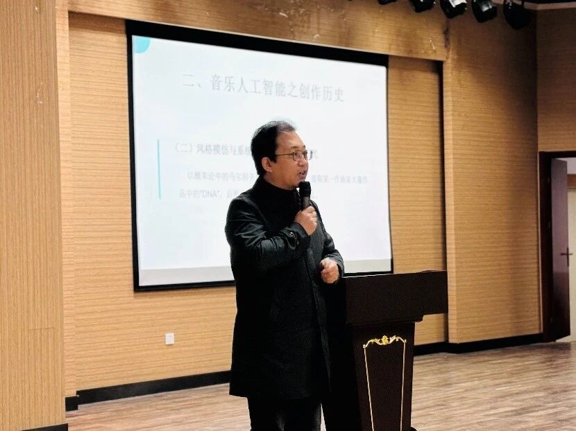 李鹏云教授以专业系统的讲解,从历史发展的角度系统梳理了音乐人工智能演进的三个阶段:第一阶段专家系统算法作曲时代,通过将作曲手法、和声学等专业技术转化为数学规则,实现基础的音乐创作,但受限于规则刚性;第二阶段风格模仿时代,借助机器学习技术,通过分析作曲家作品特征实现不同风格音乐的生成,突破了统计规律学习的瓶颈;第三阶段深度学习时代,以生成式人工智能为代表,利用大规模数据集训练实现具有艺术水准的音乐自主创作。在应用展示环节,李鹏云通过丰富的音频案例,现场演示了AIGC、Suno Studio等工具在旋律生成、和声编排等场景的实践运用,展现了生成式AI在作曲、编曲、音乐制作等领域的创新应用,并特别强调提示词在AI音乐创作中的关键作用。同时,李鹏云从课程建设、教学改革、创作实践等方面介绍了国内外院校在音乐人工智能教育中的探索经验,为美高梅娱乐城