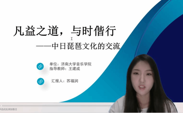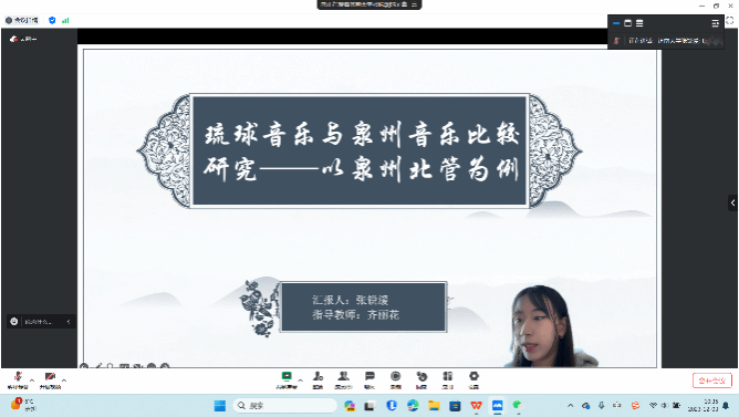其他23名硕士研究生也通过同步的线上会议进行汇报,从福建南音、昆曲艺术、琵琶音乐、中日文化交流、南洋音乐文化、跨文化交流等多个视角,探讨海上丝绸之路音乐文化的历史、发展、推广与传承,充分展示出美高梅娱乐城