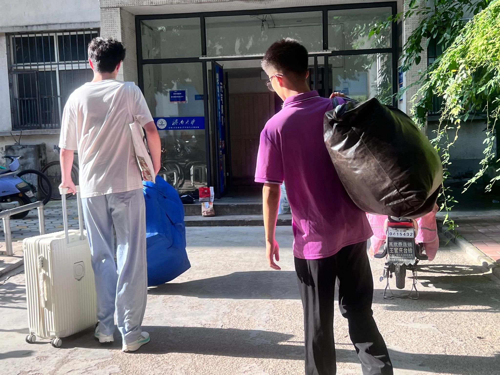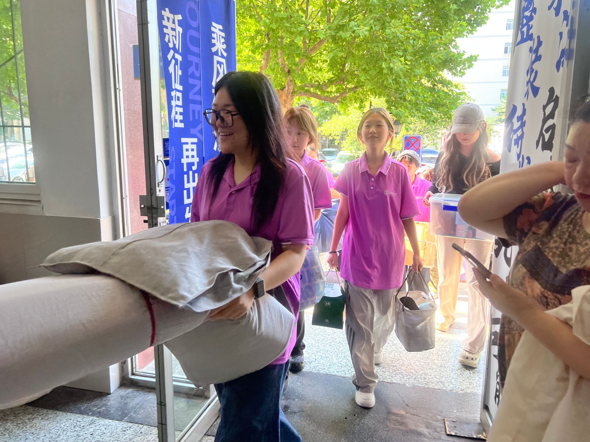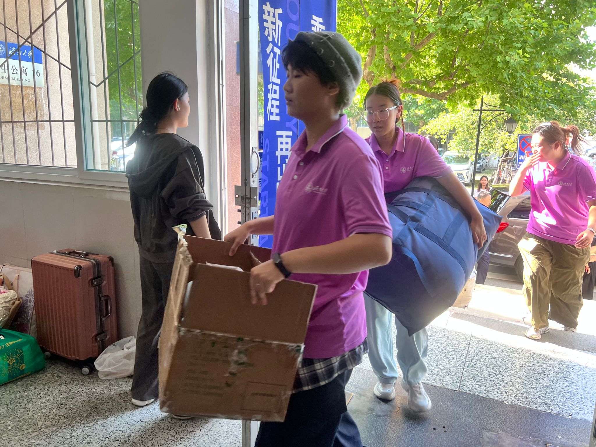 学生公寓楼下的志愿者为新生提供“最后一公里”便利服务,他们从清晨五点就开始忙碌,有的在校门口举着引导牌,笑着指引新生:“同学这边走,美高梅娱乐城