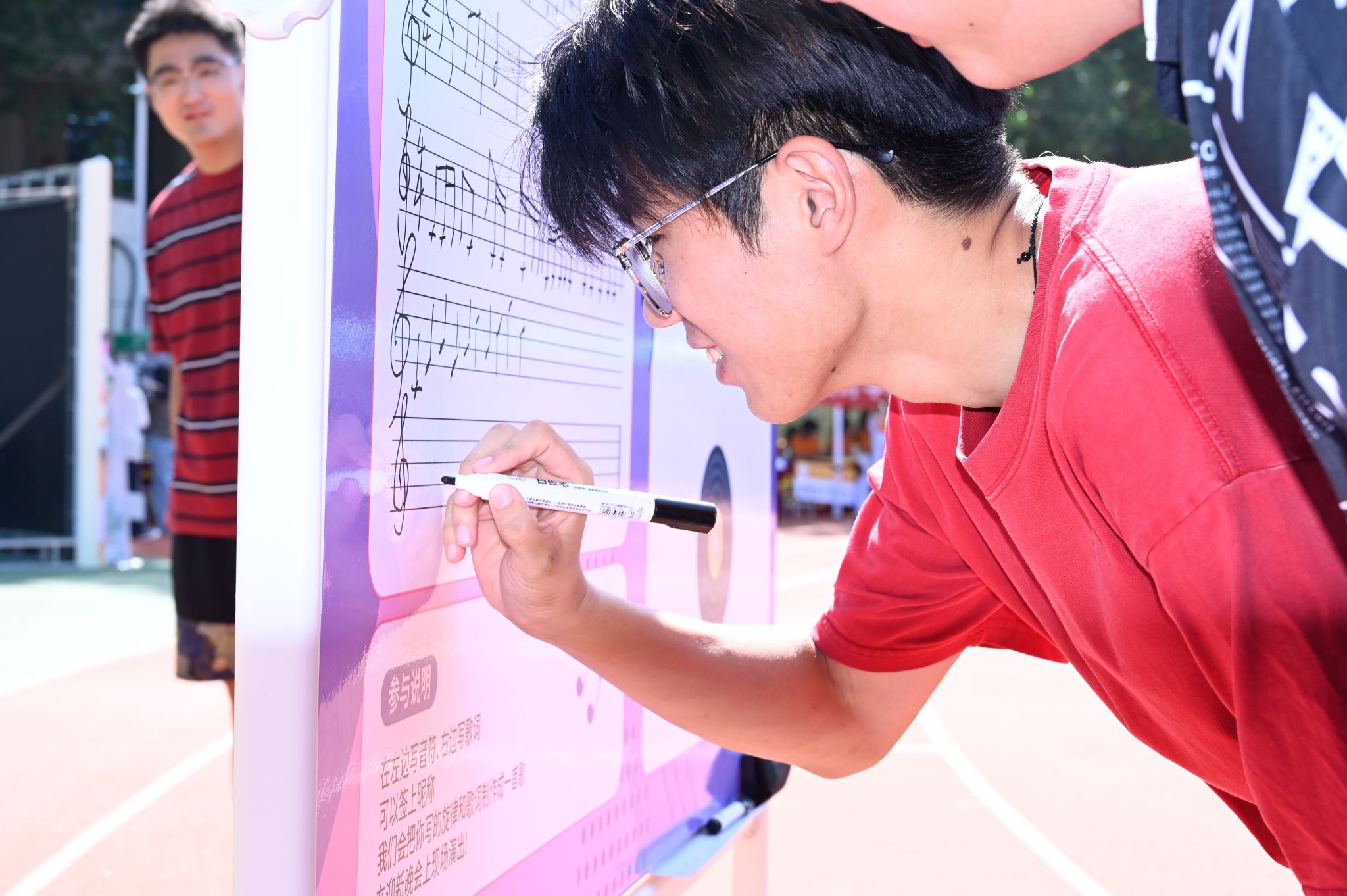 在创意满满的互动后,志愿者们为新生与家人在音乐主题背景板前定格美好瞬间。这不仅是迎新现场的一次活动,更是新生与美高梅娱乐城