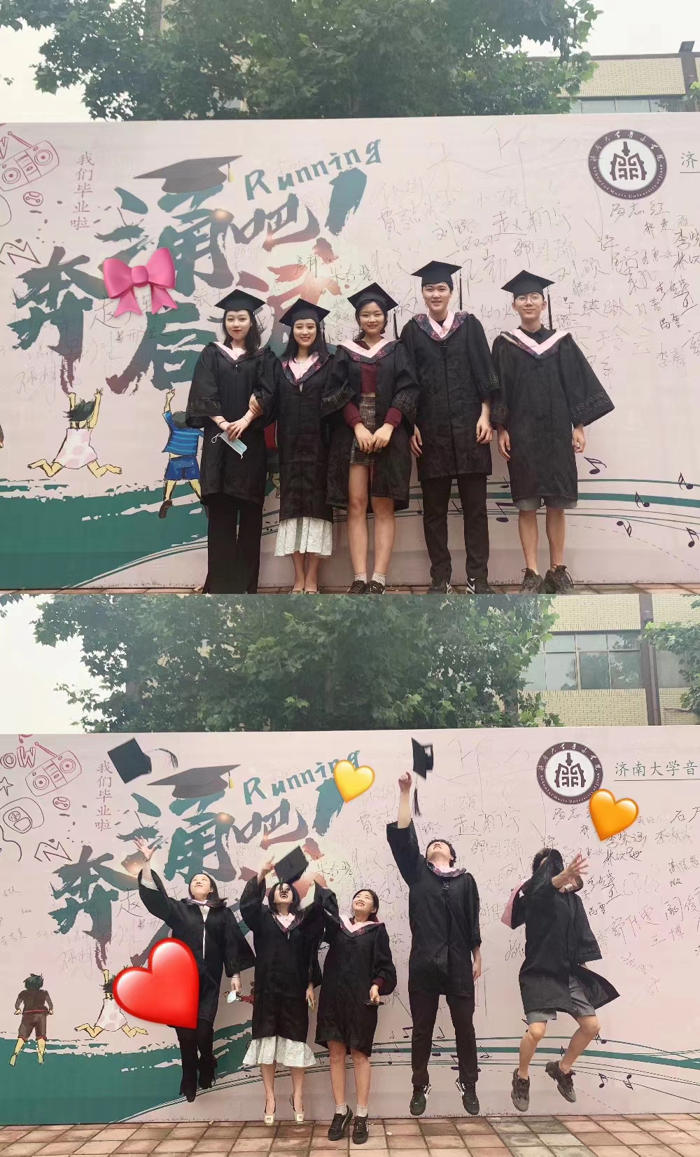 在最醒目位置放置签名墙、拉起横幅为毕业生送行,低年级同学也通过新媒体平台为学长学姐送上了温馨祝福。