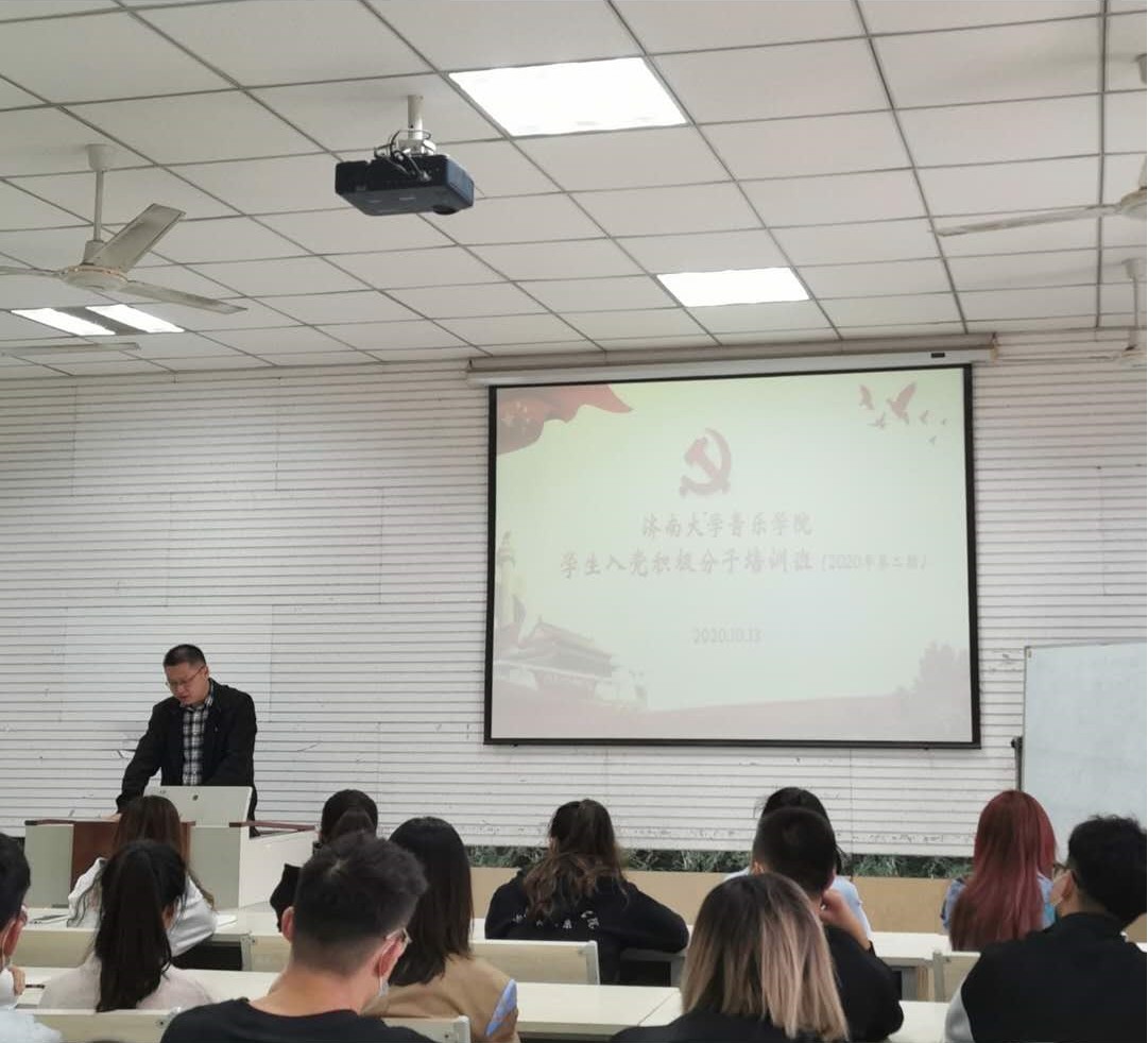 党委书记刘振为新一期入党积极分子讲授专题党课。学办主任、学生党支部书记马媛老师主持开班仪式。