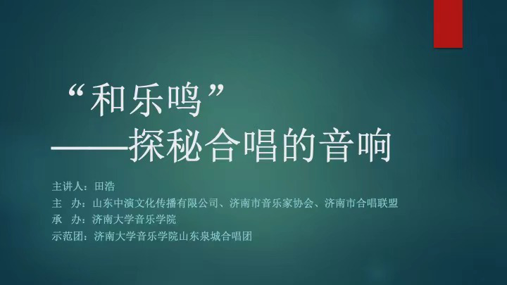 田浩老师以“‘和乐鸣’—探秘合唱的音响”为题,结合美高梅娱乐城