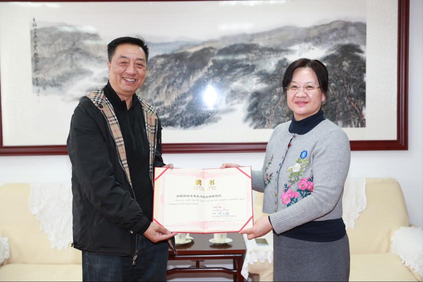 副校长李光红为赵峰教授颁发了客座教授聘书。菏泽弦索乐非遗传承人苏本栋先生,美高梅娱乐城