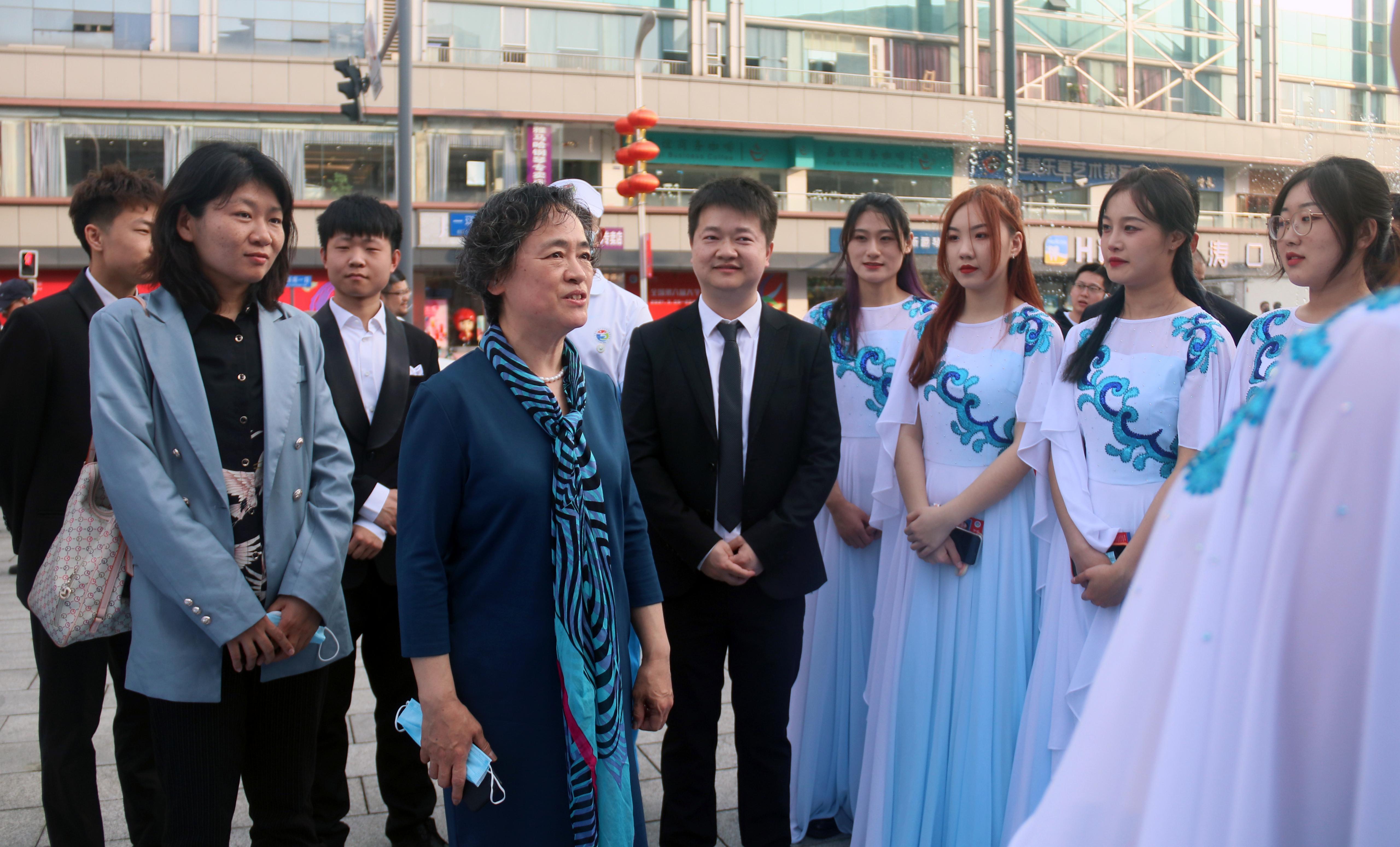 大学生的精神风貌,以实际行动向党的百年华诞献礼。山东省教育厅副厅长孙晓筠一行对参演学生进行慰问,她鼓励学生保持昂扬的精神状态,同时希望同学们要利用好参加展演的机会文化修身,艺术修心,不断提升综合素质。