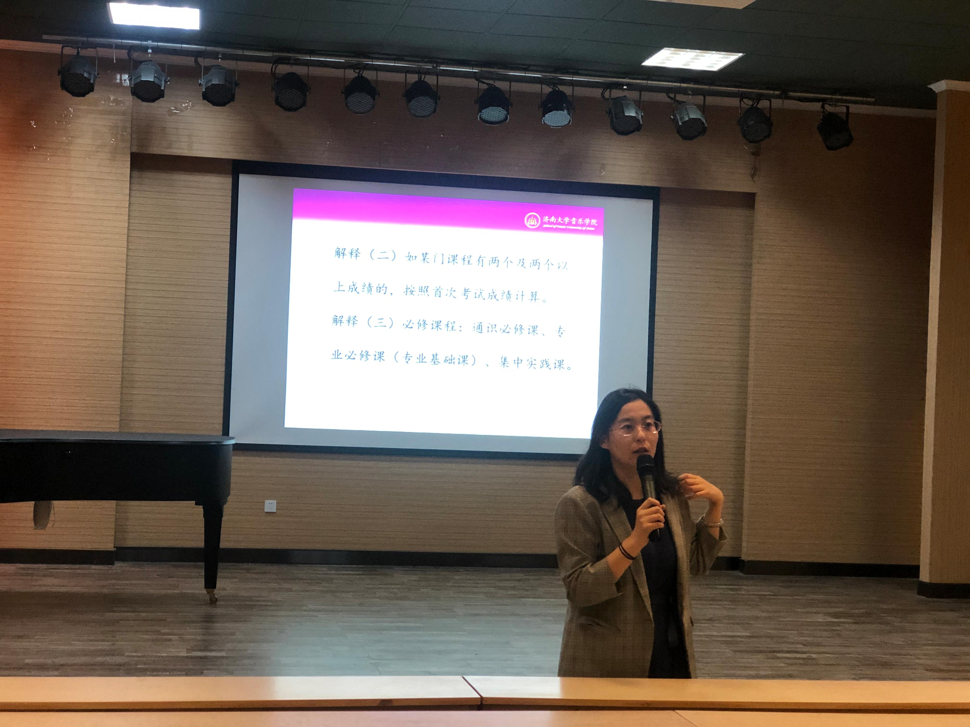 教学管理办公室冯然然老师向同学们解读了往届硕士研究生推免的相关条件和要求,分析了2018级学生的成绩情况,鼓励同学们积极竞选推免名额。