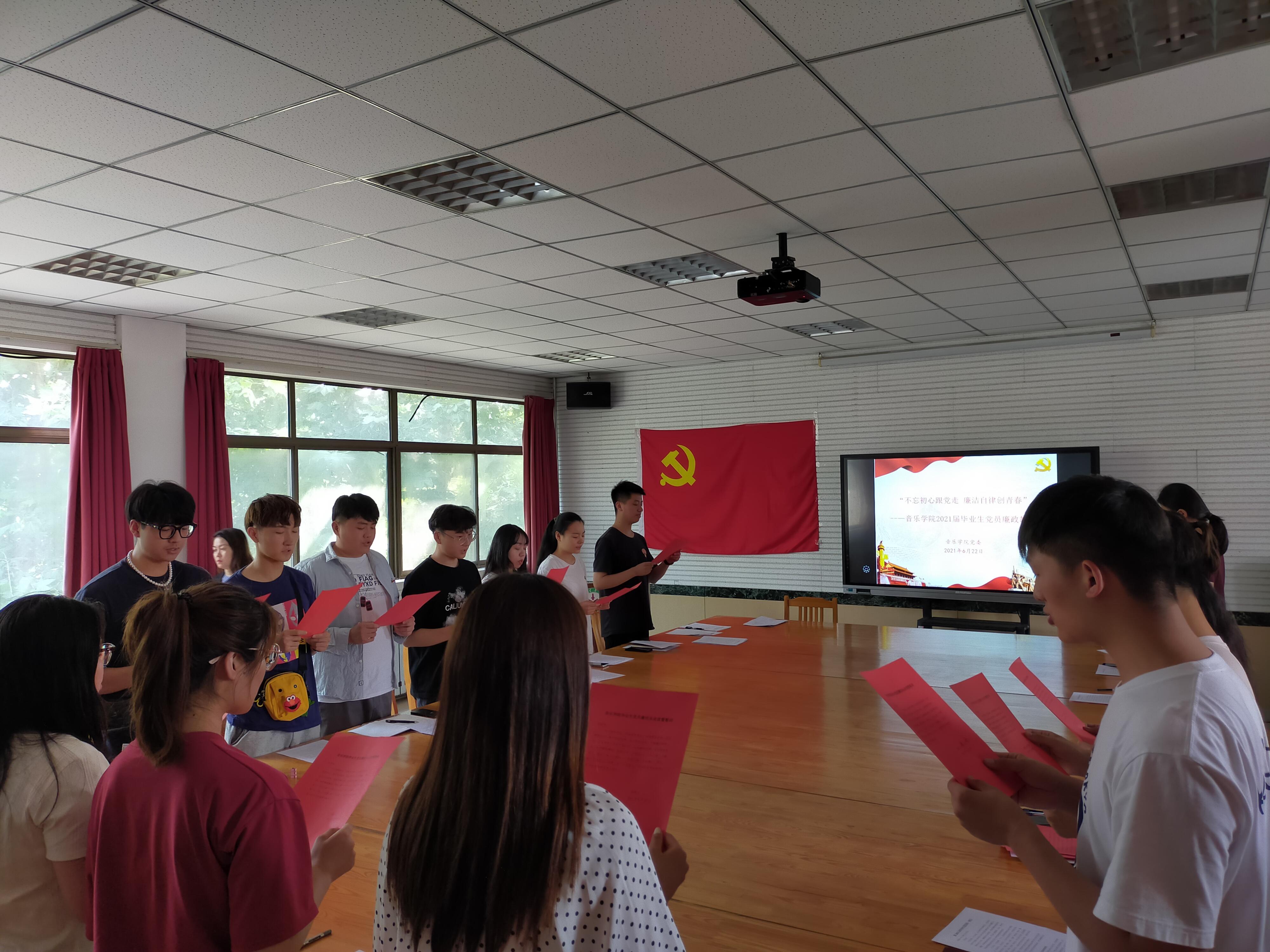 最后,在毕业生党员代表王壮的带领下,全体党员进行廉洁从业宣誓并签字承诺,政治上做一个明白人,工作上做一个勤政人,经济上做一个清白人,生活上做一个清廉人,作风上做一个正派人,处事上做一个正直人。