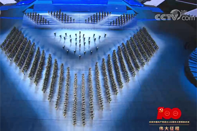 舞蹈系学生开始在济南排练;出发前,校长张士强,党委常委、宣传部部长贾海宁前往训练场地慰问并为学子们送行;4月初开始赴京参加排演,6月28日晚在国家体育场为党和功勋荣誉表彰的代表等万余名观众演出。该活动战线长、场次多、要求高、训练苦,在排演过程中,同学们精益求精的专业态度、稳定的演出水平获得了导演组的充分肯定。