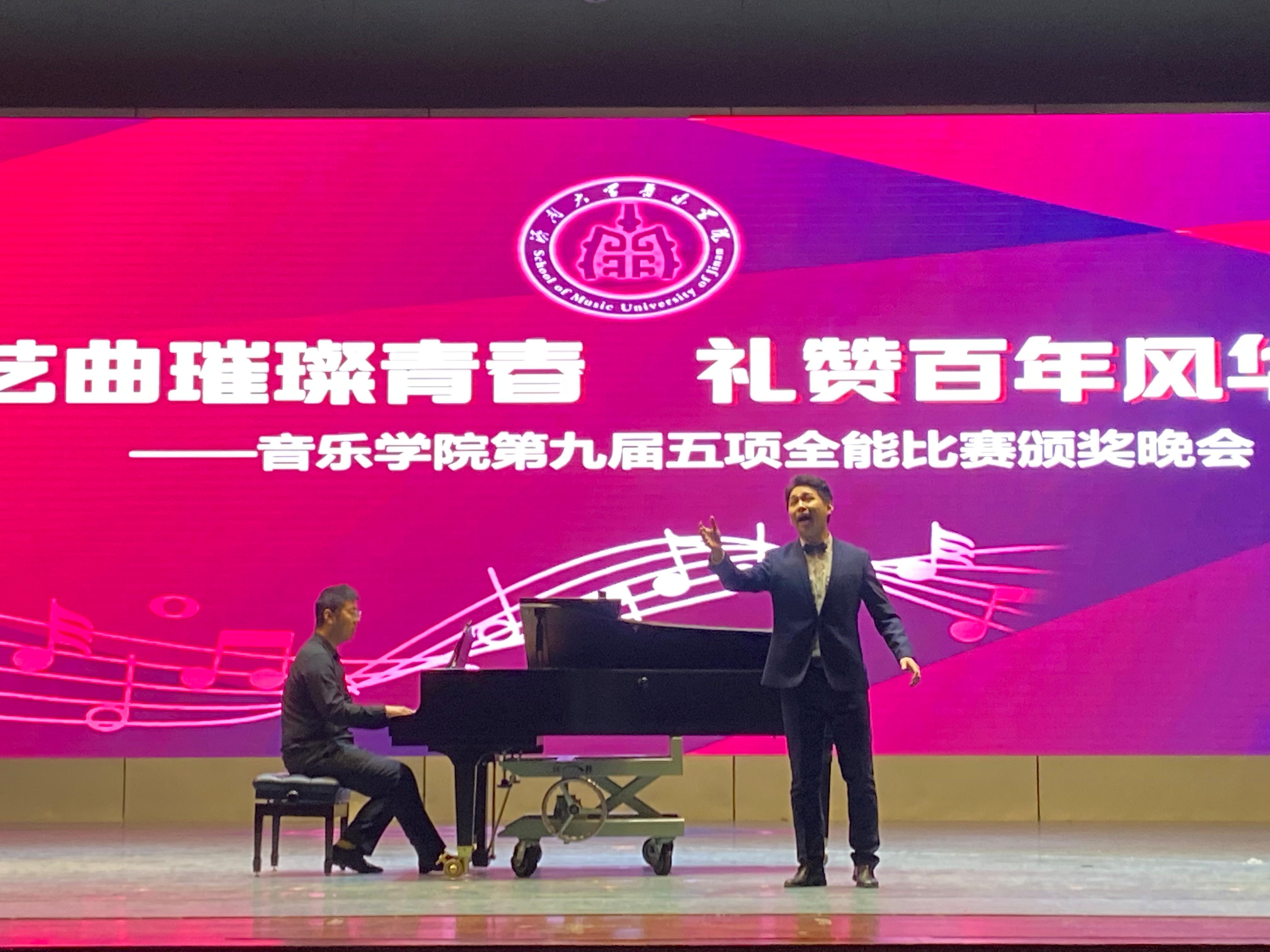 颁奖晚会上,首音乐教育系系主任杨瑞教授为本次颁奖晚会致辞,她在致辞中指出,“五项全能”大赛活动的开展,既是对美高梅娱乐城