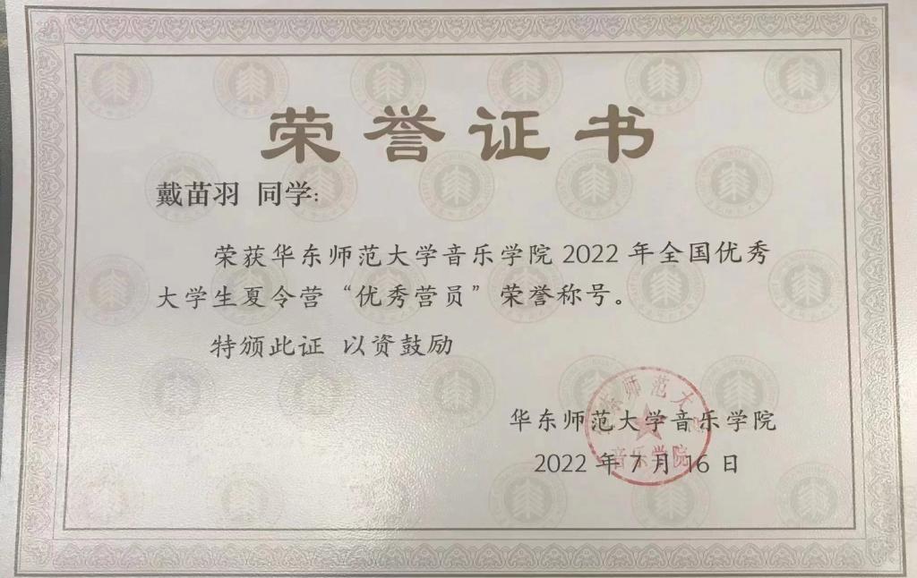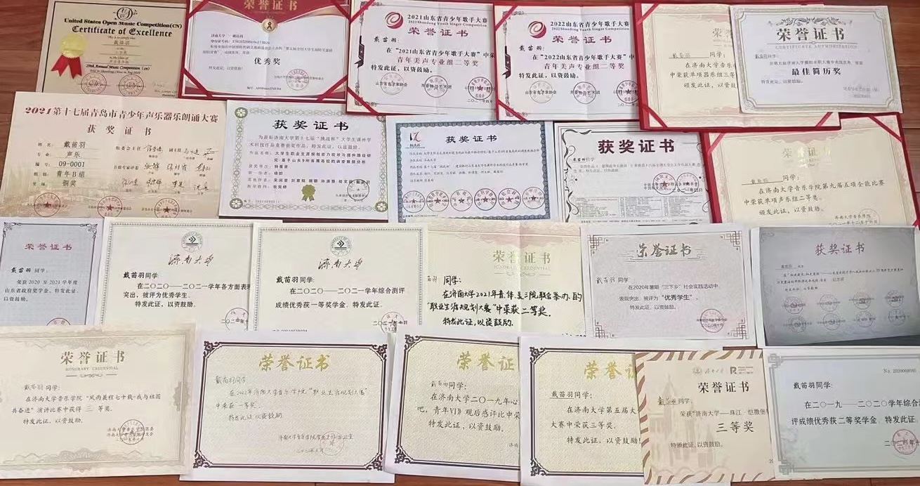 第十届学生会科创部部长,现已保研至华东师范大学声乐表演与教学方向。在2022年全国大学生暑期夏令营中,获得华东师范大学优秀营员、中南大学优秀营员、南京师范大学合格营员。前三年学习成绩、综合测评排名均为年级第一,美高梅娱乐城
