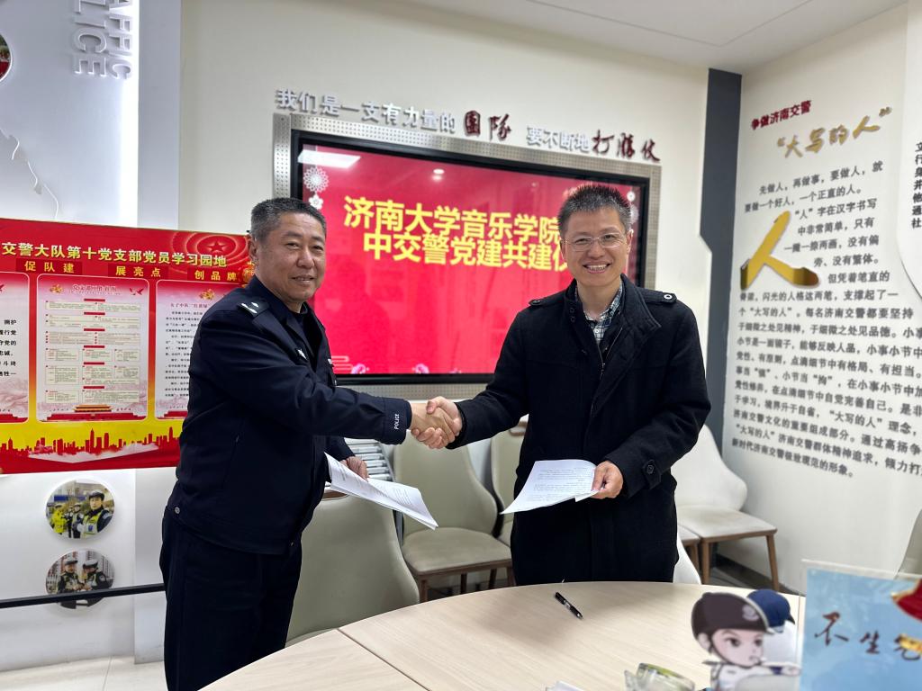 教工第一党支部与济南交警市中大队第十党支部(济南市公安局交警支队市中区大队女子中队)签订了党支部共建协议书。