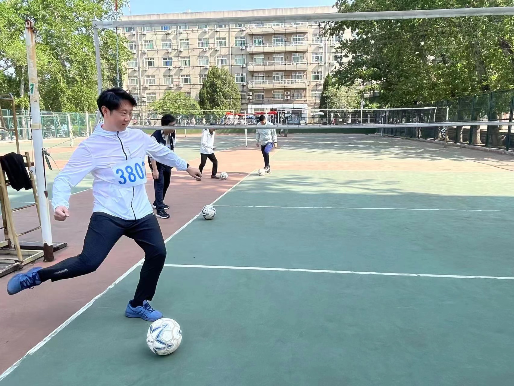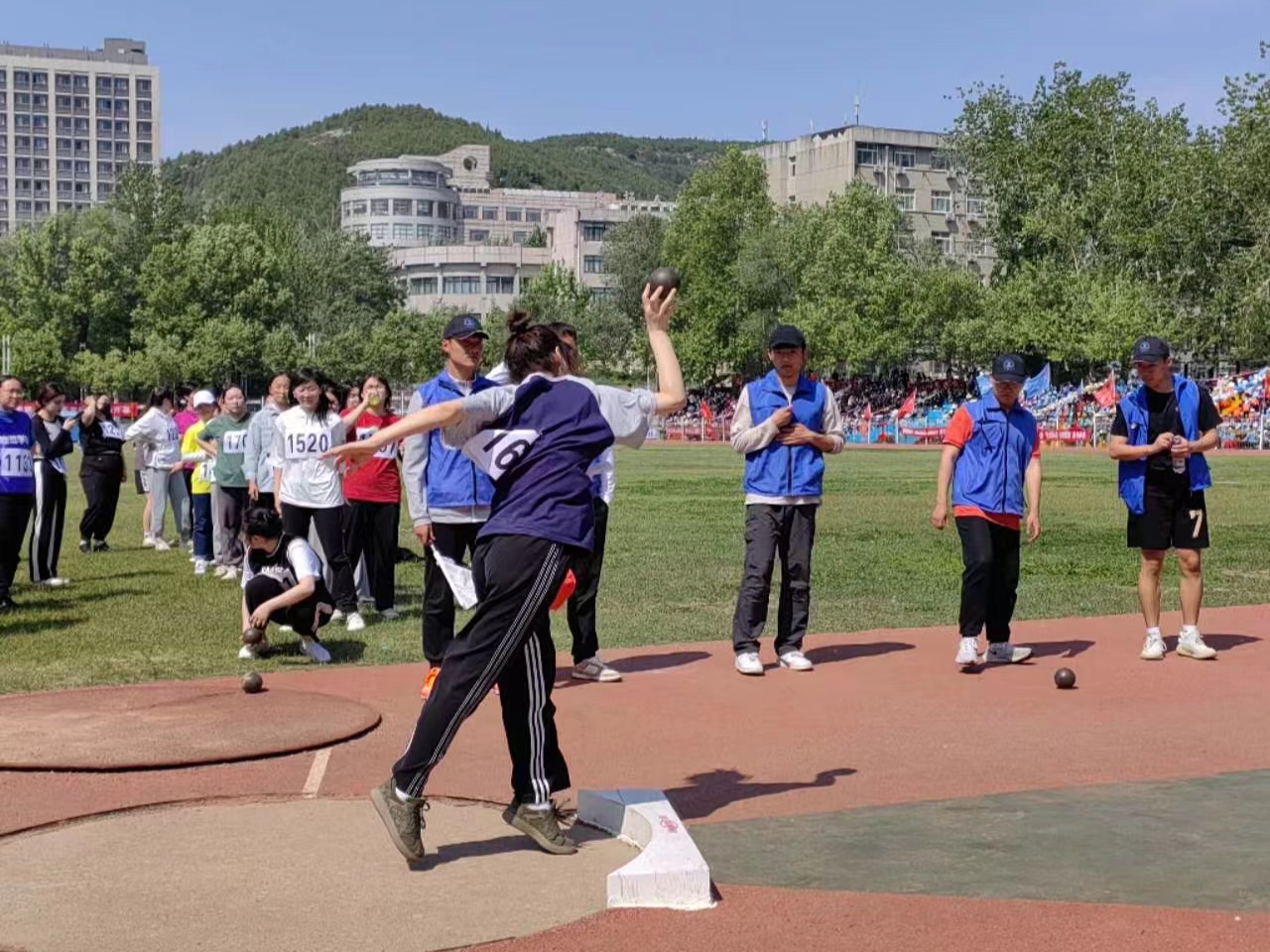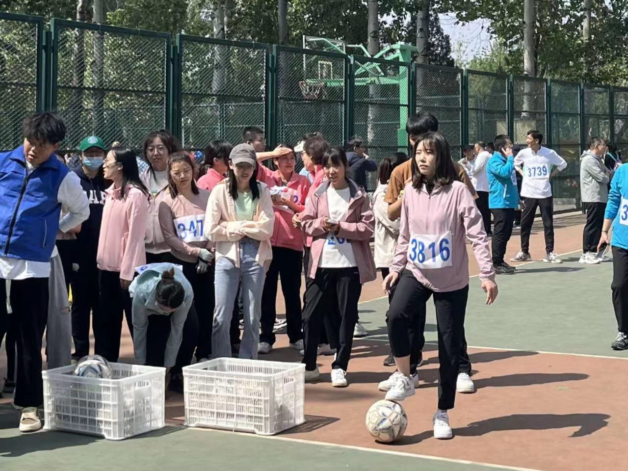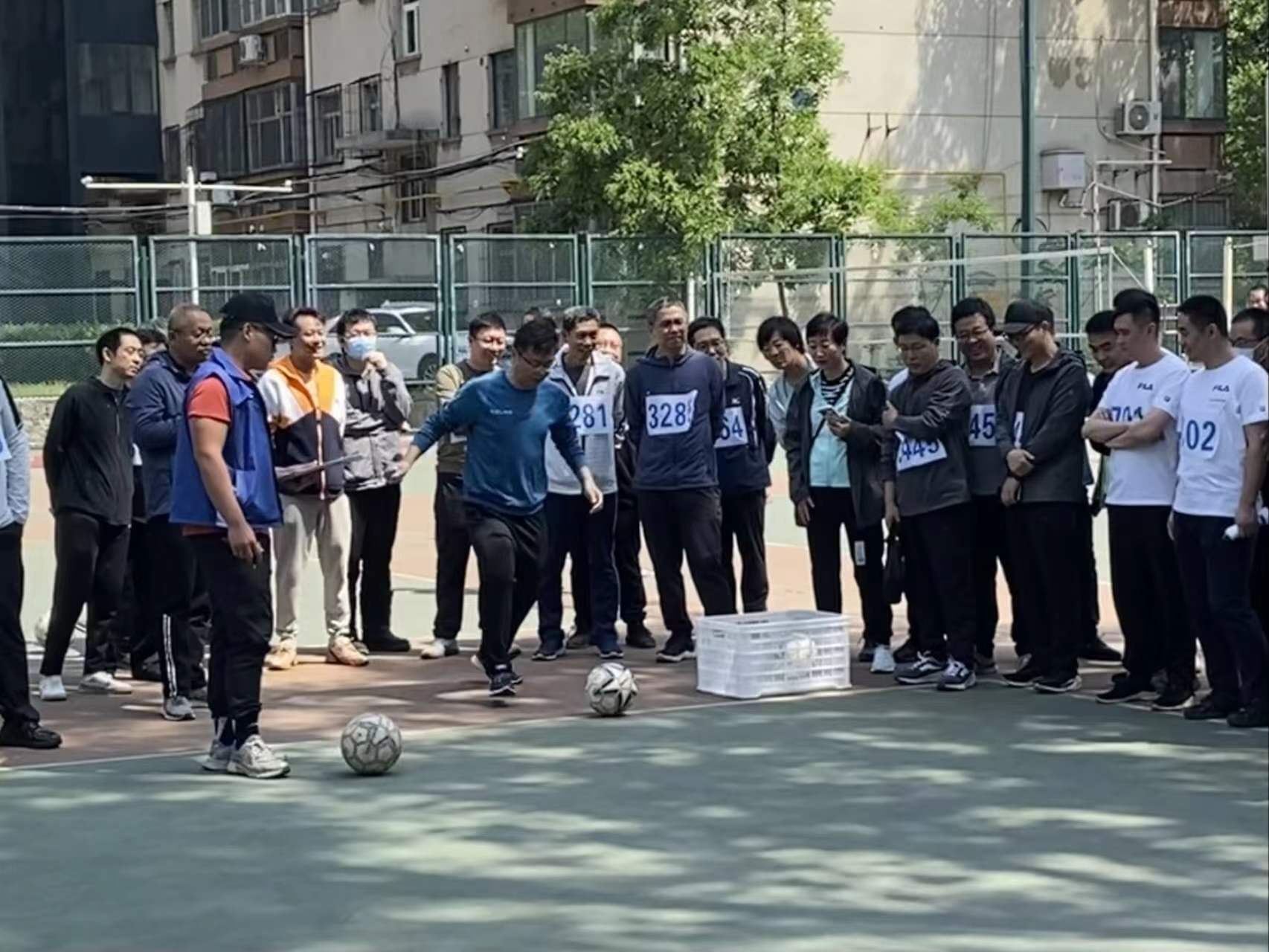二十余名老师分别参加三个组的足球射门、篮球定点投篮、跳高、标枪、铅球、跳远以及实心球等比赛,在比赛过程中展现了昂扬的体育竞技精神。