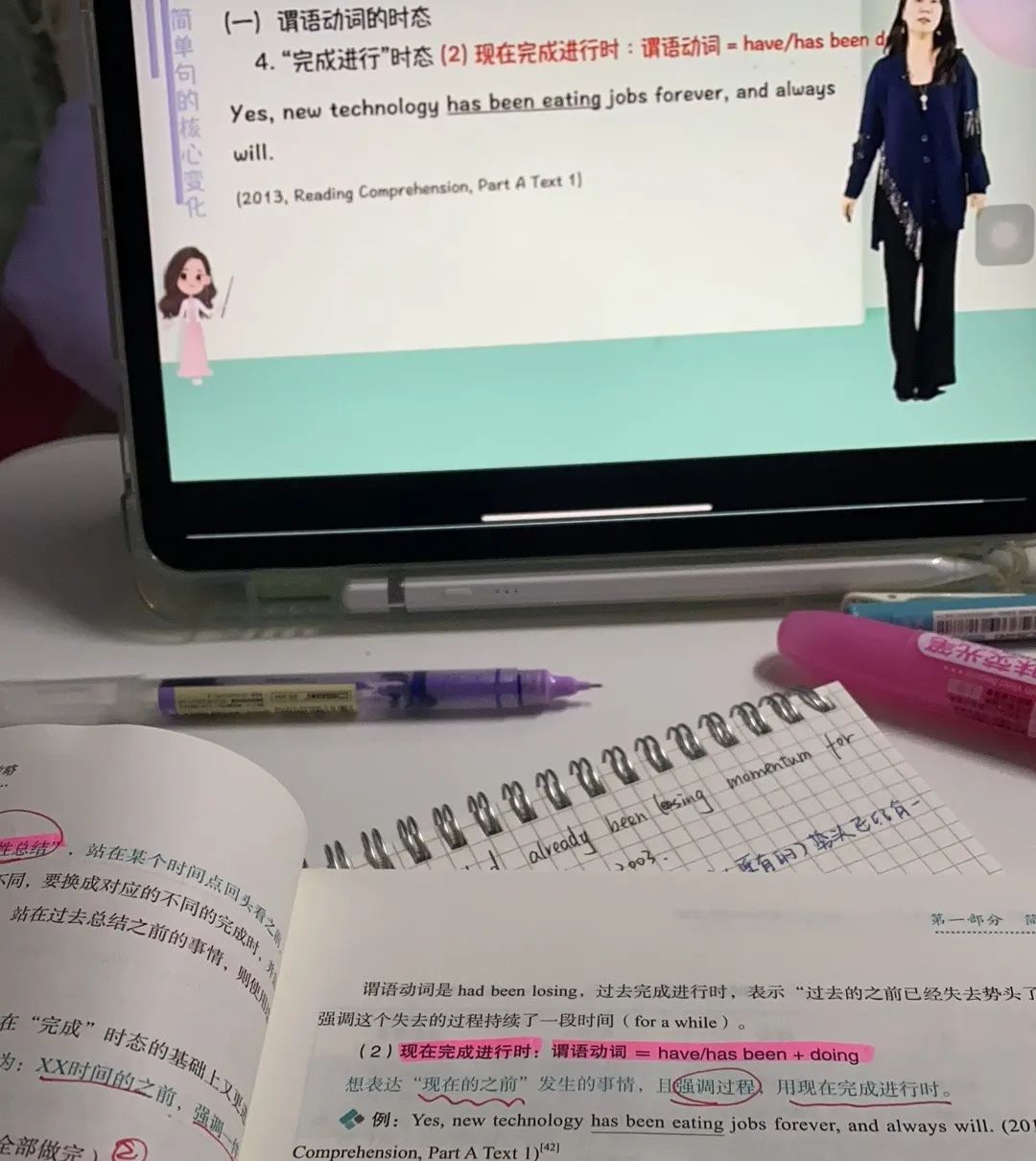 4、 小三样(完形填空、新题型、翻译):同样推荐颉斌斌老师的课程,做题思路与他的阅读方法论是保持一致的。其中翻译部分也可以跟唐静老师,讲解更为细致,课程内容也更容易理解。此部分题型可以在八月份开始。