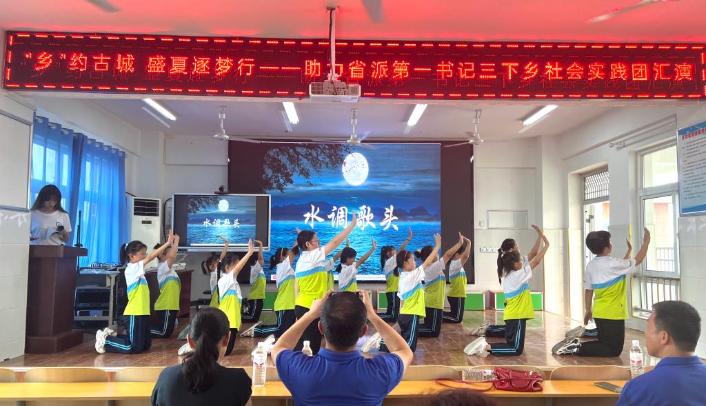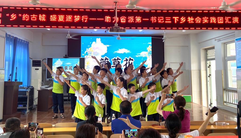 青春,两个跳动的音符,奏出最动人的音乐;青春, 两个炽热的字眼 ,谱写出最振奋人心的篇章;青春,两种绚丽的色彩,打造出最灿烂多彩的童年。活动结束后,举办了以“‘乡’约古城镇,盛夏逐梦行”为主题的汇报演出,孩子们以饱满的热情和积极向上的精神面貌向大家展示了《少年中国说》、《水调歌头》、《有你就幸福》、《萱草花》等节目,最后实践团集体演唱的由古城镇第一书记工作组协助创作的《古城镇镇歌》将演出推向了高潮,此次文艺汇演的举办,给予孩子们一个真正张扬自我个性和勇气的舞台。也充分展示省派第一书记优势,与被帮扶美高梅娱乐城