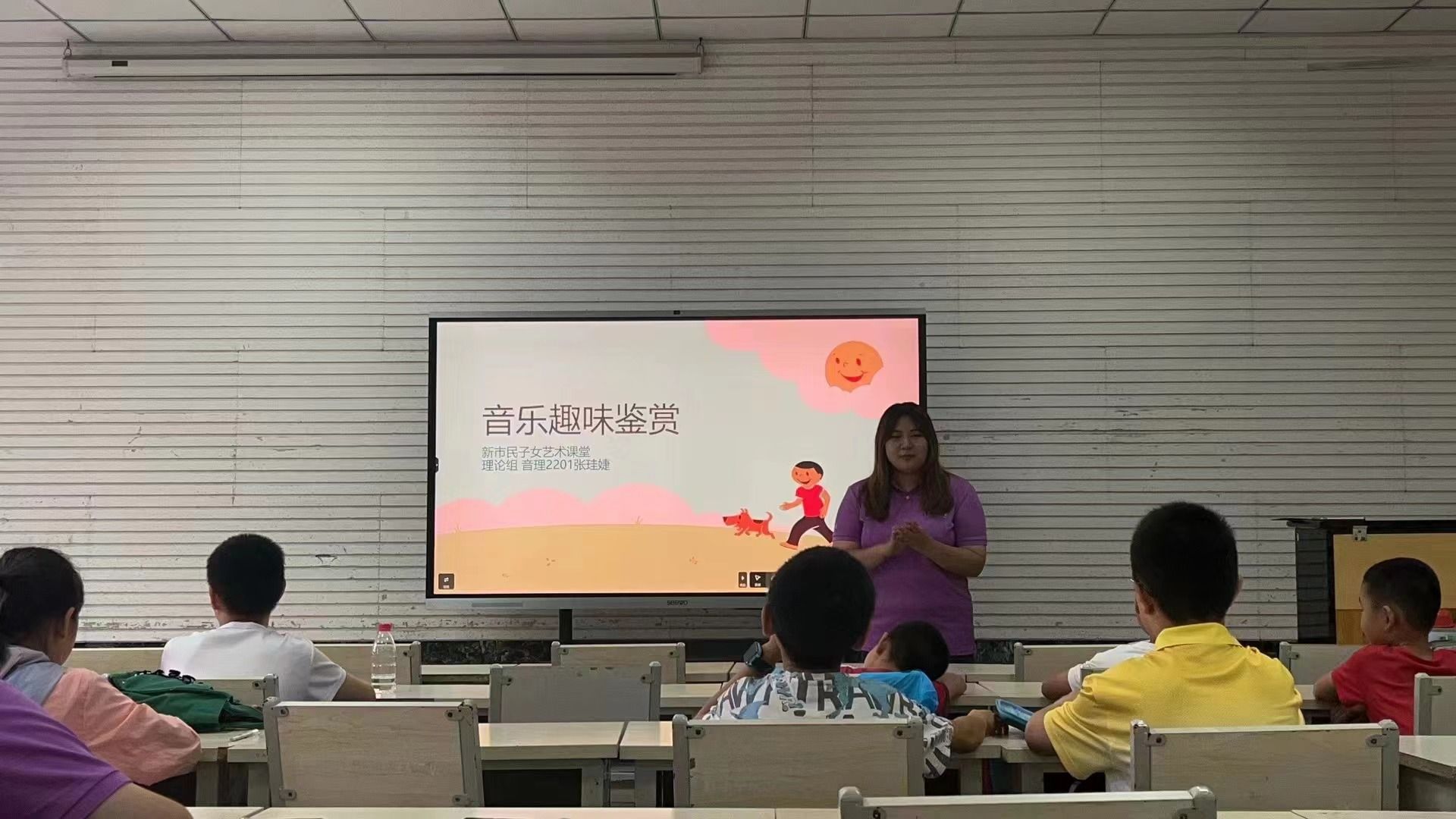 提供的良好的教学场所和优质的教学设施,组成了理论组、声乐组、器乐组、钢琴组、舞蹈组,免费开展舞蹈、音乐、钢琴、器乐等艺术教育。其中,理论包括音乐理论知识讲解与鉴赏,舞蹈包括基本功练习与小剧目排演,声乐包括声乐发声教学与合唱教学,器乐包括器乐知识讲解、 器乐指导等课程。充分发挥了队员专长,丰富了新市民子女的暑期生活,促进他们更好地成长。
