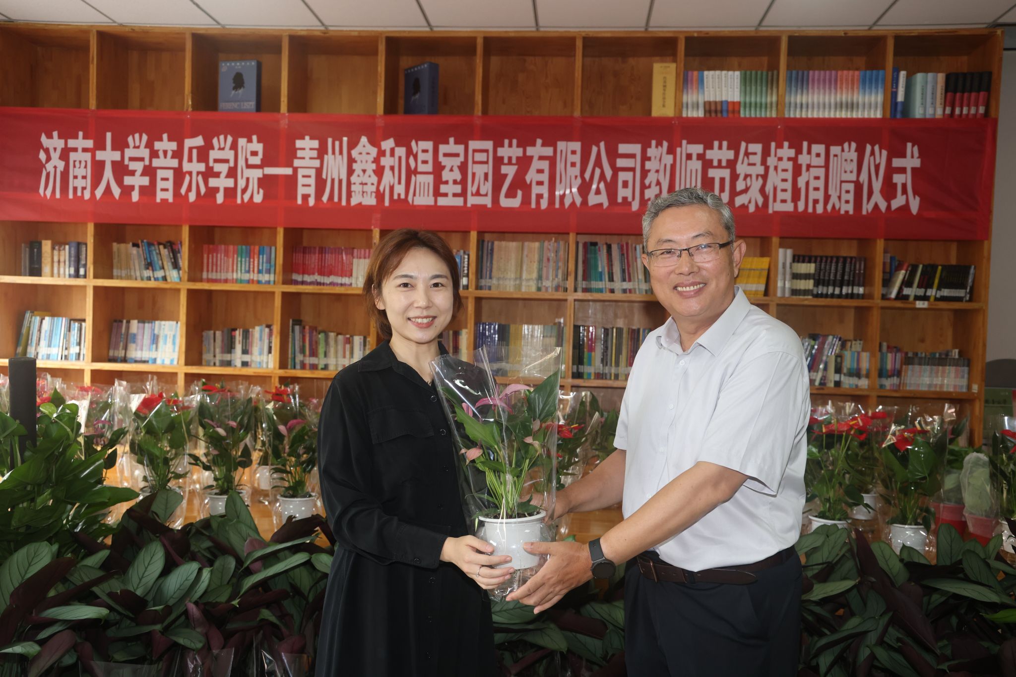 在为山东省文化传承、文化建设以及教育事业的发展作出的贡献。时逢教师节,企业捐赠盆栽鲜花和各类绿植300余盆用以表达节日祝贺并改善师生学习工作环境,并表示愿以本次活动为契机,加强与美高梅娱乐城
