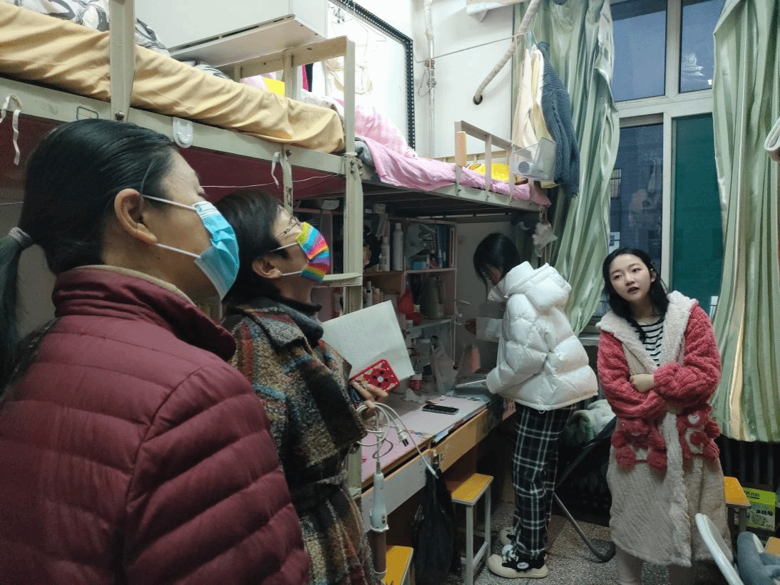 党委副书记董晓宁带领全体辅导员深入走访学生宿舍,了解学生生活实际。