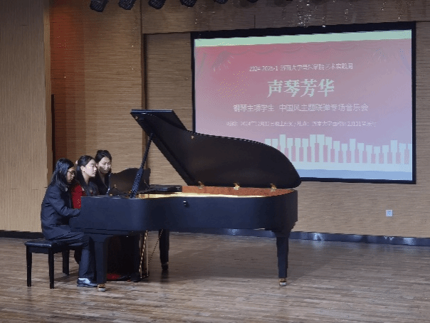 艺术实践周期间,为提升音教系钢琴主项学生的合作艺术与综合协作能力,12月12日晚上,“声琴芳华”——钢琴主项学生中国风主题联弹专场音乐会于美高梅娱乐城