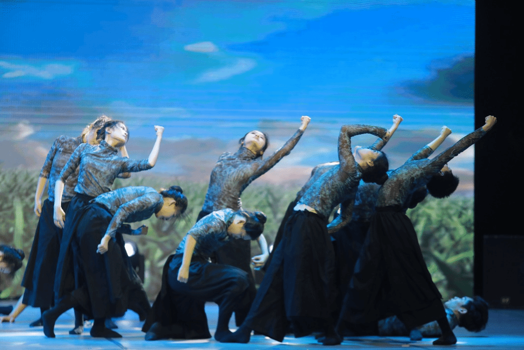 在舞蹈《野草随想》中,台上舞者们以更具张力与感染力的肢体动作,展现出“野草”坚韧不拔、生生不息的精神内核与“野火烧不尽,春风吹又生”的顽强生命力。该舞蹈蕴含的坚韧意志与奋发精神,恰如中国青年不畏艰难、勇往直前的精神写照,传递出中华民族坚韧不拔、奋发向上的精神品质。