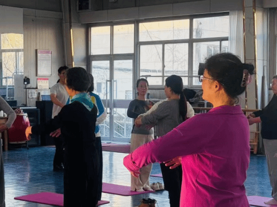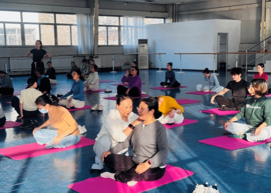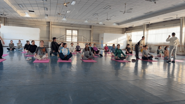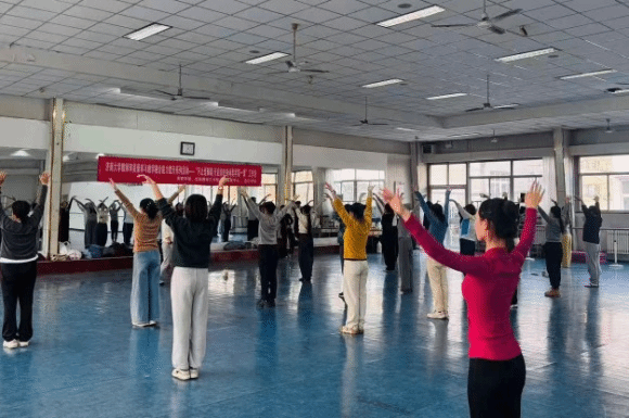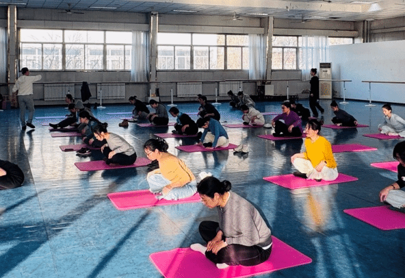 和部门的老师们带来了沉浸式身体美学体验。刘老师从基础发力点切入,细致讲解了脊柱直立、肩颈舒展、手臂线条延伸的规范发力,并通过手把手的示范与动作纠正,引导教师们对后背的肌肉群进行科学训练。结合芭蕾基础训练对腓肠肌、腘绳肌、股四头肌进行了针对性练习,使下肢更具有柔韧性。活动不仅着眼于体态塑形与身心康养的结合,更有力助力教师夯实基于良好体态的专业教态基础,深入理解身体美学的核心内涵。参与教师们热情高涨,全程积极跟练,在实践中探索美育融入课堂教学的新路径。(图3、图4、图5、图6)