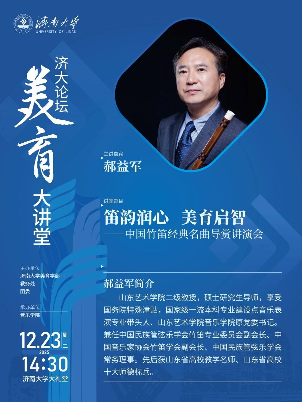 济大论坛.美育大讲堂:笛韵润心,美育启智一中国竹笛经典名曲导赏讲演会