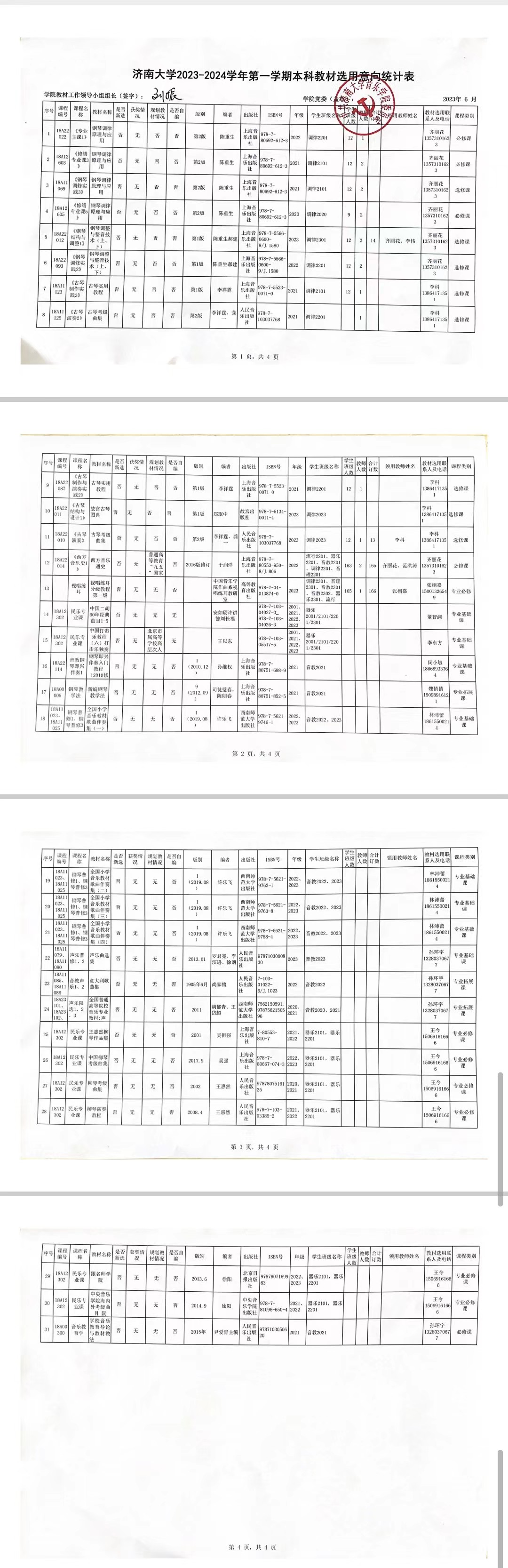 美高梅娱乐城 2023-2024学年第一学期本科教材选用意向统计表公示