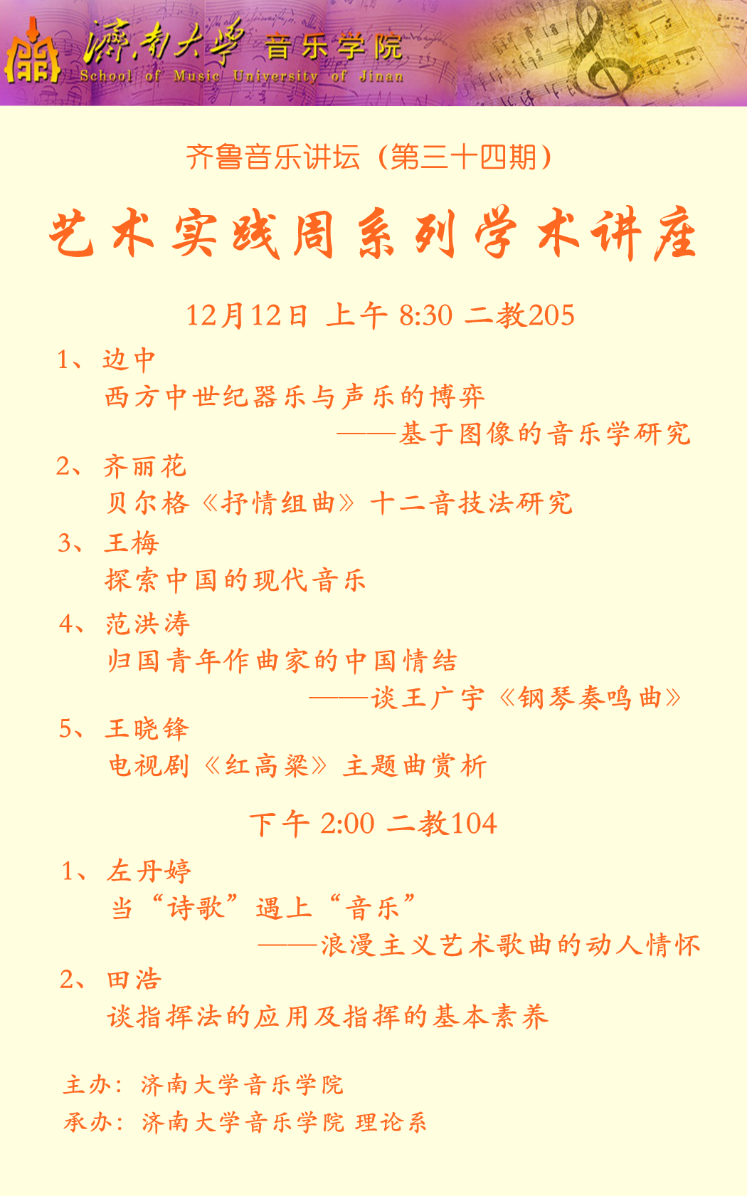 美高梅娱乐城 艺术实践周之齐鲁音乐讲坛(第三十四期)系列学术讲座通告