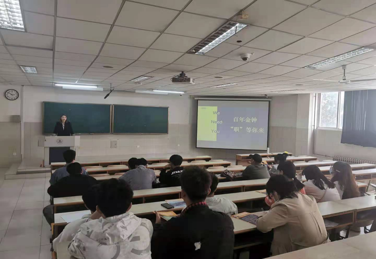 在二教105教室开展就业宣讲会,邀请山东金钟科技集团股份有限公司相关负责人进行宣讲。部分2021届毕业生参会。